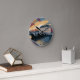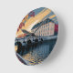 This stylized illustration captures a serene European riverside scene framed by warm autumn foliage and classic architecture. The balanced composition highlights a grand riverside building, an elegant stone bridge, and rich reflections across calm water. With a refined poster-style aesthetic, simplified shapes, and a striking seasonal color palette, this artwork delivers a timeless, atmospheric mood perfect for lovers of travel-inspired cityscapes, architecture, and fall-themed visual storytelling.
