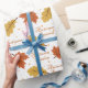 A Colorful Autumn Birthday Or Any Type Of Event For The Fall Season. A Designed Wrapping Paper In Orange And Yellow Falling Leaves
