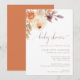 En elegant-fall-blommigt-barnduschinbjudan. Den här inbjudan till babyduschen innehåller ett tema för blommigt med terracotta, orange och lila av mörk under hela designen. Det här är perfektens inbjudan till en fallbabydusch.