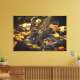 Bright höst löv av guld och bronze, tillsätt varmt färg till skogsscenen. En munk med munkavle håller en akorn mitt i porträtt. Idealisk höst färg för hemdekoration!