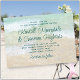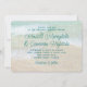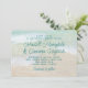 Beach-bröllopsinbjudan med bruden och brudgummen som bjuder in gäster. Inkludera fullt namn av paret i tealblått skript. Välj pappra uppgraderingar eller ladda ned designen för att skriva ut din egen.