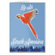 Av Luft Sydamerika trycks färjeaffisch med retro-papegoja.