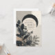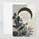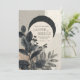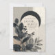 Skapa en mystisk och sofistikerad ton för din fest med denna dramatiska avantgardistiska himmelska bröllopsinbjudan. Designen är en mästarelig collage av abstrakta former och texturer i en slående monokrom palett. Bakgrunden består av rika, fläckiga ljusbeige och dammiga grå paneler, vilket ger den en lyxig, taktil grund. Den centrala fokuspunkten är en djärv svart halvmåne som delvis skymmer en stor, ljus tonad cirkel, vilket skapar en kraftfull, himmelskt fokuspunkt för din text. Denna geometriska struktur är dramatiskt skiktad under en frodig arrangemang av mörka, dysteriska botaniska element. Lövverket är renderat i djupt svart, kolgrått och bleka sepia-nyanser, med breda blad och ömtåliga mörka blomsterkvistar som skapar en högkontrast skuggeffekt. Subtila nyanser av falskt guld eller koppartextur tittar fram genom arrangemanget, vilket ger en antydan till lyxig glans. Denna moderna abstrakta stil är perfekt för par som planerar ett kvällsbröllop, en sofistikerad museimottagning eller någon annan händelse som omfamnar en okonventionell, konstnärlig och dramatisk estetik. Denna design är perfekt för moderna bröllopsinbjudningar, himmelska