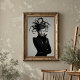 Ett steg in i en värld av sofistikerad konst med detta fängslande svarta och vita mode porträtt. Det centrala fokus ligger på en kvinna som är försedd med ett enastående, avantgardiserat huvudstycke, som har intrikade, kurvformade former som skapar en dynamisk, skulpturell silhuett. Hennes eleganta, helt svarta ensemble, kompletta med läderhandskar av elegant och en högnekad topp, kompletterar de dramatiska huvuddukerna och utesluter en aura av mysterium och chic elegans. Bilden återges i klassisk enfärgad form och framhäver slående kontrast, rik struktur och fet linjer, vilket ger den en tidlös men modern dragningskraft. Biet är en firande av nyskapande utformning och dramatiska föreställningar, perfekt för dem som uppskattar högkvalitativa och konstnärliga uttryck från mode.