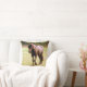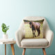 Avslaxad brun häst som går mot dig på den här kudden. Vackert, naturligt och lugnt promenera över fält för att hälsa dig välkommen. En ädel och underbar häst, underbar kudde för vilken hästälskare som helst. Fotografiet av hästen är på framsidan och baksidan är ett rent oliv grönt färg.