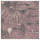 Soky- och visemisk struktur med olika nycklar och lås på mörkens lila. Nycklar och lås har olika former och storlekar, vissa med komplicerade detaljer och andra med enkla former. Utformningen är perfekt för Halloween-tematiska projekt, t.ex. kostymer, filt, kuddar, gardiner och så vidare.