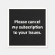För sarkasmen älskare i oss alla. Kolla in den här vitboken "Avbryt min prenumeration på dina problem"-designen på kläder, mugg, muspekare, knappar och andra unika gåvor.
