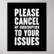 Avbryt min prenumeration på dina problem med svartvit citat som visar Sarcastic Typography
