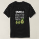 En glad, tandlös avokado med stor, vacker flin, strålande positivitet och roligt. Den lekande sloganen "Smile if you not have Teeth!" kompletterar designen, skapar den perfekt för en lätt och humoristisk t-shirt.