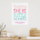 Denna bedårande bit med frasen "Även om hon är liten, hon är vild" gör en underbar present till din lilla flickas barnkammare. Du kan anpassa den med hennes namn och födelsedatum, vilket säkerställer att den kommer att vara älskad i många år framöver. Det fungerar också som en fantastisk present till nya föräldrar.
