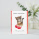 Den här söta tecknade akvarellkatten ocelot sitter på ett stort rött rosa hjärta med den där roliga kärleksblicken. Extra akvarellgrafik har lagts till som ramar på det här vykortet i ljust rött. Texten lyder: "Även om jag är en ocel-liten..." och nedan på framsidan: "...jag älskar dig ett ocelot!" På baksidan finns ett stort hjärta och en liten ocelot med text som du kan redigera: "Mina känslor för dig är djupa". Färgerna är bruna, beige, svarta, rosa och röda, med blå ögon. Du kan redigera och ändra alla aspekter av den här designen. Tryck på knappen anpassa för att ändra textens teckensnitt, stil eller storlek.