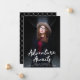 Trendig tillkännagivande för studenten med student lodrät-fotot med "Äventyr Awaits" i vit handskriven skrift. Anpassa Äventyr i Awaits tillkännagivande för studenten genom att lägga till student namn, namn och studenten. Tillkännagivandet går tillbaka till visning en elegant svart och vit trellis mönster.
