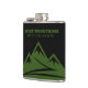 Äventyr inväntar Rocky mountains logotyp anpassningsbar kolv. Lägg till din egen personlig eller ett roligt citat. Grönt Colorado-bergens logotyp är som störst med vandringsspåret. Anpassningsbar höftkolv för drycker. Manly Birthday-gåva till människor som studerar, campar i kärlek, utomhus, naturen osv. Unika gåvor till vänner, familj, medarbetare, kollega, pappa, make och andra.