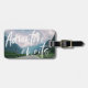Resbagagemärke för resenärer och äventyrare! Vackra bergsscener med texten "Äventyr väntar" i ett avslappnad-skript. Skriv ut returadressen på märkrns baksida.