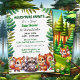 Kute pojkens babyduschinbjudningar med ett Woodland Kreatures-tema med söt rackoon, ekorre och räv i en söt tecknad stil omgiven av magisk skogen och fern löv.