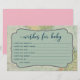 Det här söta spelet är perfekt för en rusticerad äventyrsinspirerad baby shower! Gästerna lämnar sina önskningar för barnet. Dessa gör fantastiska tillägg till scrapbook.