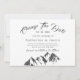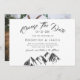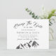 Vackert naturligt utseende tillsammans med dekorativt typsnitt och illustrationer av bergen och anpassningsbarnas skript "äventyr börjar". Anpassningsbar monogram och datum med fotot på baksidan för den unika ändringen av datumkortet