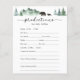 Kort för babyduschförutsägelser med vattenfärg evergreen träd, berg och mamma med baby björn. Ett roligt sätt att interagera med duschgäster.