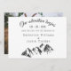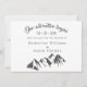 Vackert naturligt utseende tillsammans med dekorativt typsnitt och illustrationer av bergen och anpassningsbarnas skript "äventyr börjar". Anpassningsbar monogram och datum med fotot på baksidan för att spara datumkortet