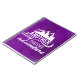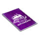 En bärbar dator från spiral med ett inspirerande citat som säger: En annan dag till äventyr. En bild med sol som tittar ut bakom några berg. Ställ in på en lila bakgrund.