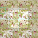 Småskalade, fria dragna blommigtar, löv och snurrar på plåster av torkad grönt och vit stänk och på vandrande sjöfåglar vid diken