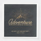 Födelsedag eller annan händelse, party-blöjor. Designad med en illustration av guld-färgaden på en svart-grått-bakgrund. Designad med en illustration av ett berg där sol strålar lyser utåt. Typografi säger: Äventyr utforskar drömupptäckten.