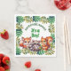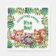 Äventyr väntar. Det är en pojkvän som duschar pappert tallrikar med ett Woodland Creatures-tema med söt rackoon, ekorre och räv i en söt tecknad stil omgiven av magisk skogen och fern löv.