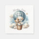 "Äventyr Awaits": pappra blöjor för barn duschas med en lämplig vit marionett som håller en nalle riden i blå luftballong. Vattenfärgen blå himmel har vita moln med omgivande guld-stjärnor. Mall ingår.