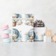"Äventyr Awaits": den babydusch som är papper med en vacker vit valp som håller en nalle riden i en blå luftballong. Vattenfärgen blå himmel har vita moln med omgivande guld-stjärnor.