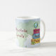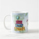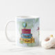 Suitväskor med vattenfärgseffekt staplas och redo för stora rörelser. En jordglob sitter ovanpå väskan mot en världskarta över vattenfärger. Underbar mugg till för den resande världen över, eller använda som en tjänst vid en farväl eller lämnande party av något slag, vare sig det är en flytt från internationell, karriär eller arbetsbyte, pension, sabbatsjobb. Tillgängligt med matchande produkter.