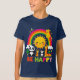 En viskartad utformning med en färgstark "Be Lycklig"-luftballong flytande på rullande backe, djur, regnbåge och skogar. Perfekt för små utforskare!