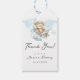 Äventyrsvänlig presentetikett med flygande björn i flygplan - Baby Shower