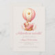 Den här söta babyduschinbjudan innehåller en söt vattenfärgsvilande nalle i en rosa strimlad luftballong med rosa blommor runt basket, ovanför ord "Äventyr väntar!" i rosa-reflexskript. Anpassa texten med namn i skript som ska skrivas mamma och detaljerna i sans serif-teckensnitt på en beige bakgrund. På baksidan finns utrymme för blöjraffel, bokar för baby och registerinformation, tillsammans med ett bekvämt QR-kodgäster som kan söka igenom registret. Idealisk för en flickdusch.