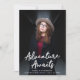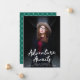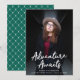 Trendig tillkännagivande för studenten med student lodrät-fotot med "Äventyr Awaits" i vit handskriven skrift. Anpassa Äventyr i Awaits tillkännagivande för studenten genom att lägga till student namn, namn och studenten. Tillkännagivandet går tillbaka till visning och elegant grönt och vit trellis mönster.