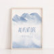 Cute Monogram Typography "Äventyr Awaits" på vinterteman med snö bergsdesignad perfekt för daghem, lekrum, barnrum, sovrum. Barns rumsdekoration. Utformning för könsneutrala baby.