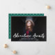 Trendig tillkännagivande för studenten med student vågrät-fotot med "Äventyr Awaits" i vit handskriven skrift. Anpassa Äventyr i Awaits tillkännagivande för studenten genom att lägga till student namn, namn och studenten. Tillkännagivandet går tillbaka till visning och elegant grönt och vit trellis mönster.