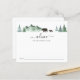 Barnkalasaktivitetskort med akvarell granar, berg och björnar. "Råd"-kortet uppmanar gästerna att dela med sig av råd till de blivande föräldrarna när de förbereder sig för barnet.