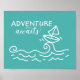 Denna söta affisch är perfekt för barnet (eller vuxen) i ditt liv som är full av äventyr. Denna design har en segelbåt som rider högt på vågorna och texten "ÄVENTYR väntar" i en kombination av vita typsnitt, allt på en turkos blå bakgrund. Finns även i lila.