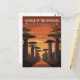 Embark on an exotic journey with this stunning Avenue of the Baobabs Madagascar Travel Postcard. This design captures the iconic, towering Baobab trees lining a rustic road under a breathtaking African sunset.