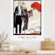 Avfärd till kasinot by George Barbier (1923), modemodell. Hon bär en aftonrock av Worth: orientalisk körsbärsblomsterduk, vida vida ärmar, pälsmanschetter & krage. Han bär en svart smoking & vit slips.