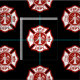 Det maltesiska arga symbolet av avfyrar räddingen sitter i en mönstrad design på en svart bakgrund.