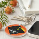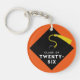 Kreativt avgångsminne nyckelring present med svart examensmössa och gul tofs på orange bakgrund. För att anpassa, redigera texten för att ändra avgångsklassens år.