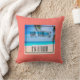 En roligt avgick till stranden, ahh den spelar ingen roll avgick citationstecknet för I förmiddagen för det snart för att vara den avgick personen. Presenterar en strand, och havplatsen på en inramad korallfärg kudder med svart typografi.