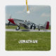 Christmas holiday ornament featuring a photo of a vintage P-51 Mustang Airplane Photo (taken by me). Customize it with your name or initials or short phrase and replace photo if you like. Perfect for a pilot, flight instructor, aviation enthusiast, or veteran.