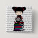 En liten flicka sitter på en bunt av bokstundläsning. Bakgrund är ett utdrag från en saga.