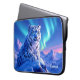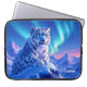 Med den här sleeven för bärbara datorer och pekdatorer får du en övernaturlig beröring som har ett stort leopard i snö med piercing blue ögon, päls som är försedd med en tunn mönster av frost och is, när den går mot ett bergsklättring med snö som är baklyst av sol och aurora borealis. Anpassa med namn! Design © W.H. Sim. Se mer på zazzle.com/word2art