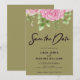 Avocado anpassningsbar "Spara datum"-inbjudan med rosor med svart bakgrund och blankt svart handskrivet teckensnitt . Denna design har vackra rosa rosor och ett stort kalligrafiskt teckensnitt som du kan ändra till valfri färg du vill. Du kan också anpassa alla detaljer och textfärger i denna Spara datum-mall.