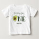 En avokado t-shirt för din baby första födelsedag. Baby skjortan har en färg-plan av grönt och vit med ord "One" i stort brev och en söt, leende, avokado-tecknad som ord första brev. Anpassa skjortan, lägg till den i din vagn och grattis på födelsedagen till ditt underbara baby! Avocado en första födelsedag Baby T-Shirt Sweetsham Food Art | ©Melissa Patton - Artist/Illustrator