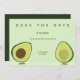Ett bröllop spara datum-kort med ett avokado-tema. Tack vare detta kort kan ni båda representeras av avokados från lycklig och få redo att börja sina liv tillsammans. Färg-projektet är i skuggor av grönt och utformningen har en blandning av stollig och modern utformning. Avocado Roligt Whimsical Food Bröllop spara datum Sweetsham Food Art | ©Melissa Patton Artist/Illustrator