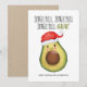 Rolig mat tema julkort med en söt avokado i en tomtehatt med en "Jingle Bell, Jingle Bell, Jingle Bell GUAC"-text. Baksidan har ett rustikt kraftpapperstil tryck. Konst av KL Stock